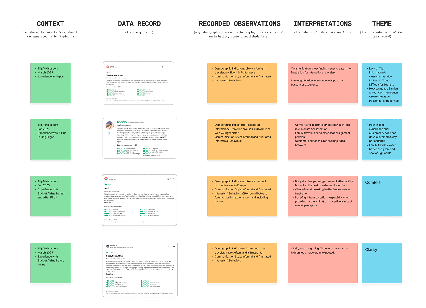 Before jumping into solutions, our group conducted thorough research to understand the root causes of stress for parents traveling with young children. We also examined how current airline systems attempt to address these challenges.Our discovery process included: